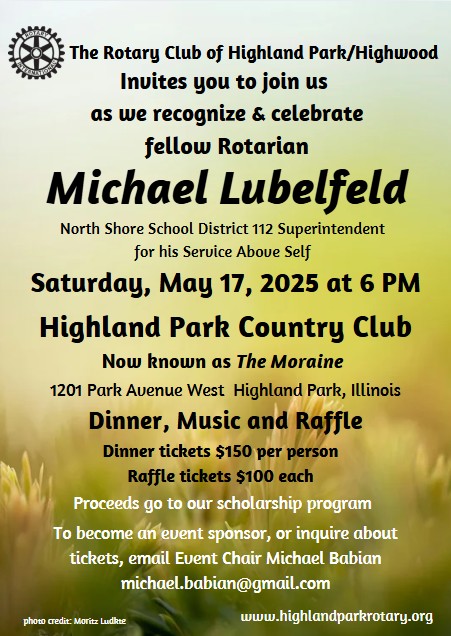 Mike Babian gave us an update on the Gala. Len announced the golf tournament is August 14th. Ben mentioned Ravinia days for the kids. Helping out at the Children's concerts, wearing Rotary t-shirts would help with a public presence. He will select a day and let us know. Skip also brought up the need to have more of a public presence. If you know of someone we should hear from, please let me know so we can schedule speakers. - mb If anyone else has ideas, has some time on their hands, or has a friend they think would love to know more about Rotary, please respond to this email. |